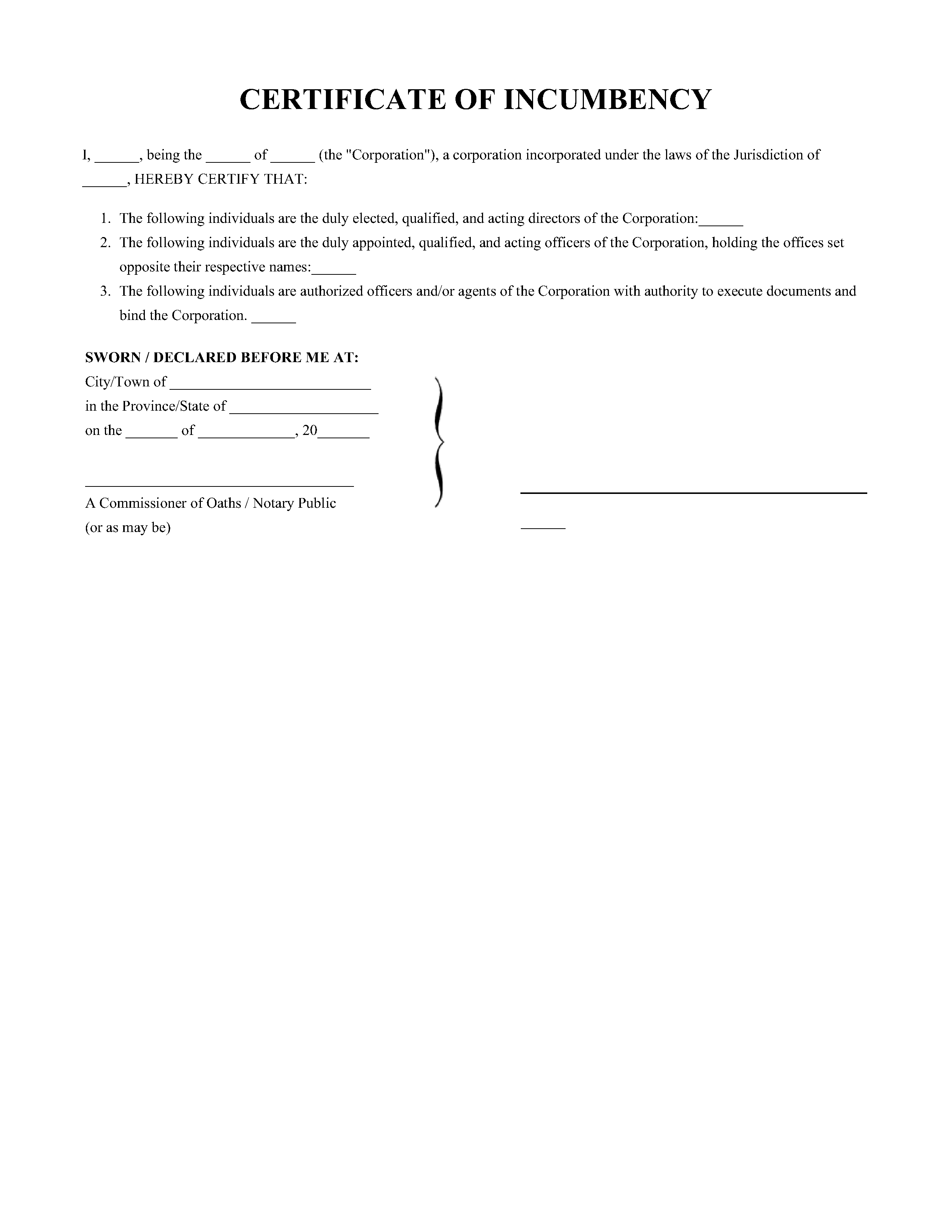 That said, we highly recommend having your Certificate of Incumbency commissioned. This strengthens the document''s validity if disputes ever arise down the road.