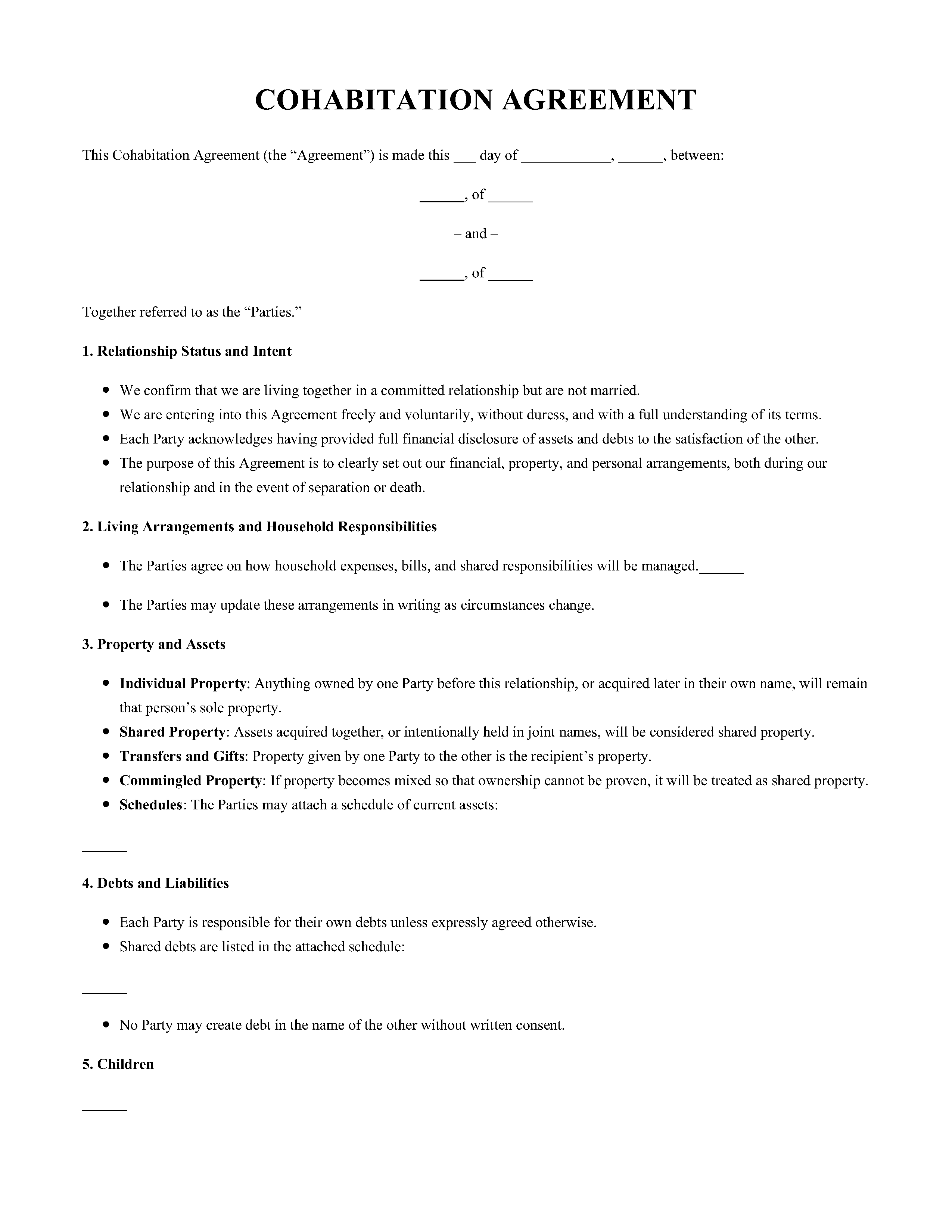 Home Templates Family & Relationships Free Cohabitation Agreement Template
