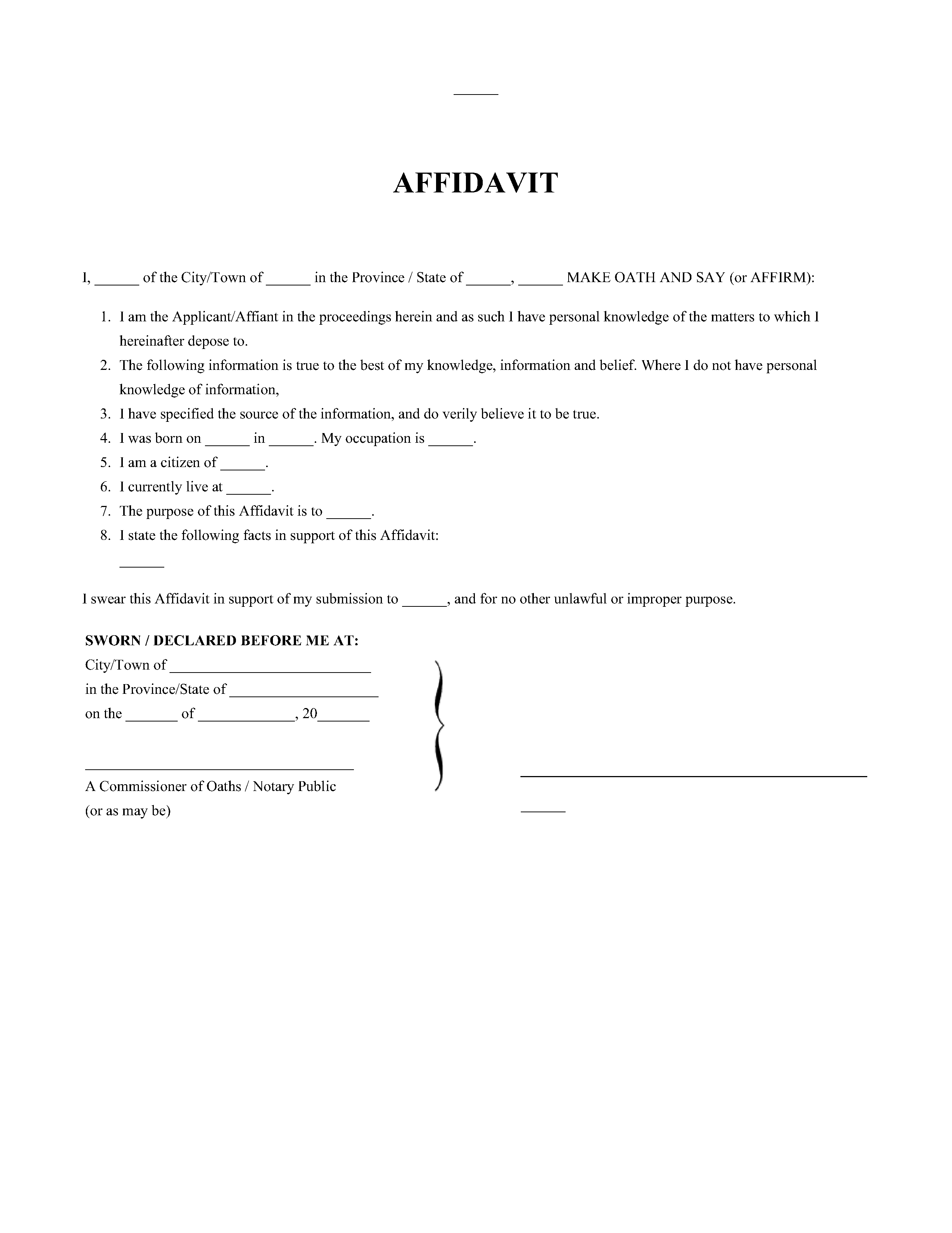 In Canada, Affidavits are typically required when an individual must provide evidence of a claim or to support facts in legal proceedings. Courts can require you to submit an Affidavit as evidence and may accept one instead of in-person testimony.