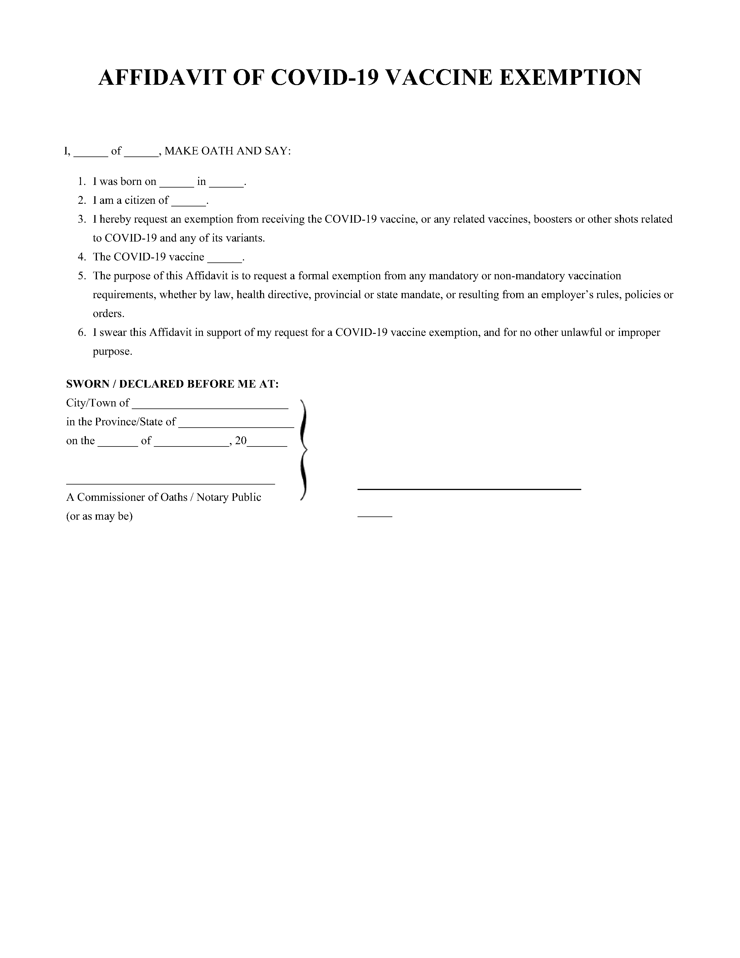 Submitting an Affidavit does not guarantee a vaccine exemption will be granted or override applicable public health laws or organizational policies.