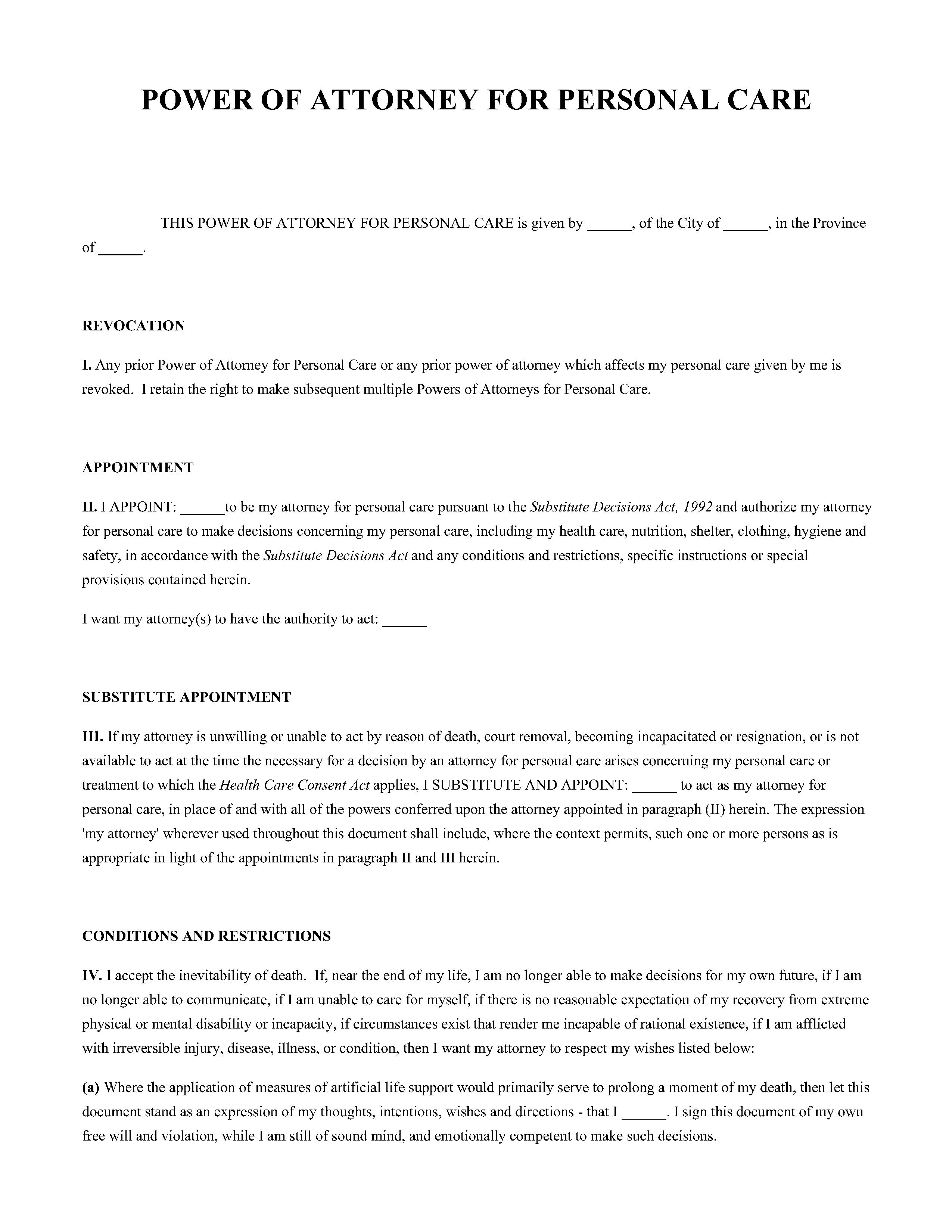 Your POAPC may be invalid, revoked, or no attorney is available to act. If so, a substitute decision-maker may be selected under the Health Care Consent Act, or a court may appoint a guardian. A family member cannot automatically make all personal care decisions.