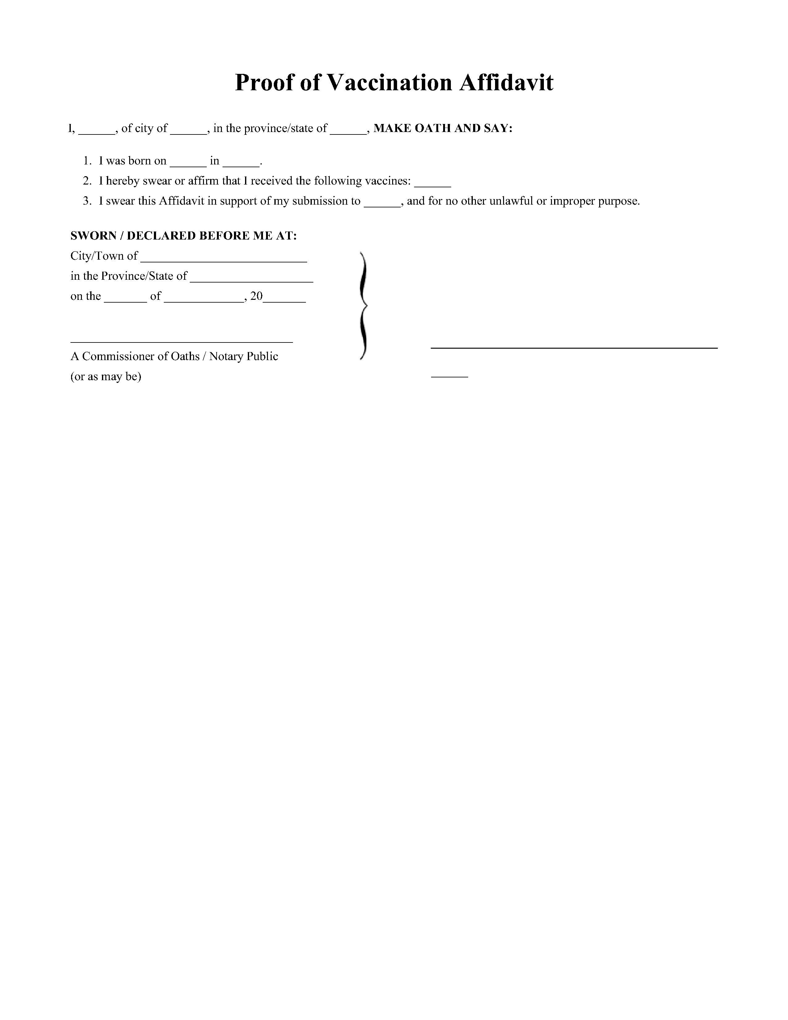 You may require a Proof of Vaccination Affidavit when organizations request formal confirmation of vaccination in Affidavit form.