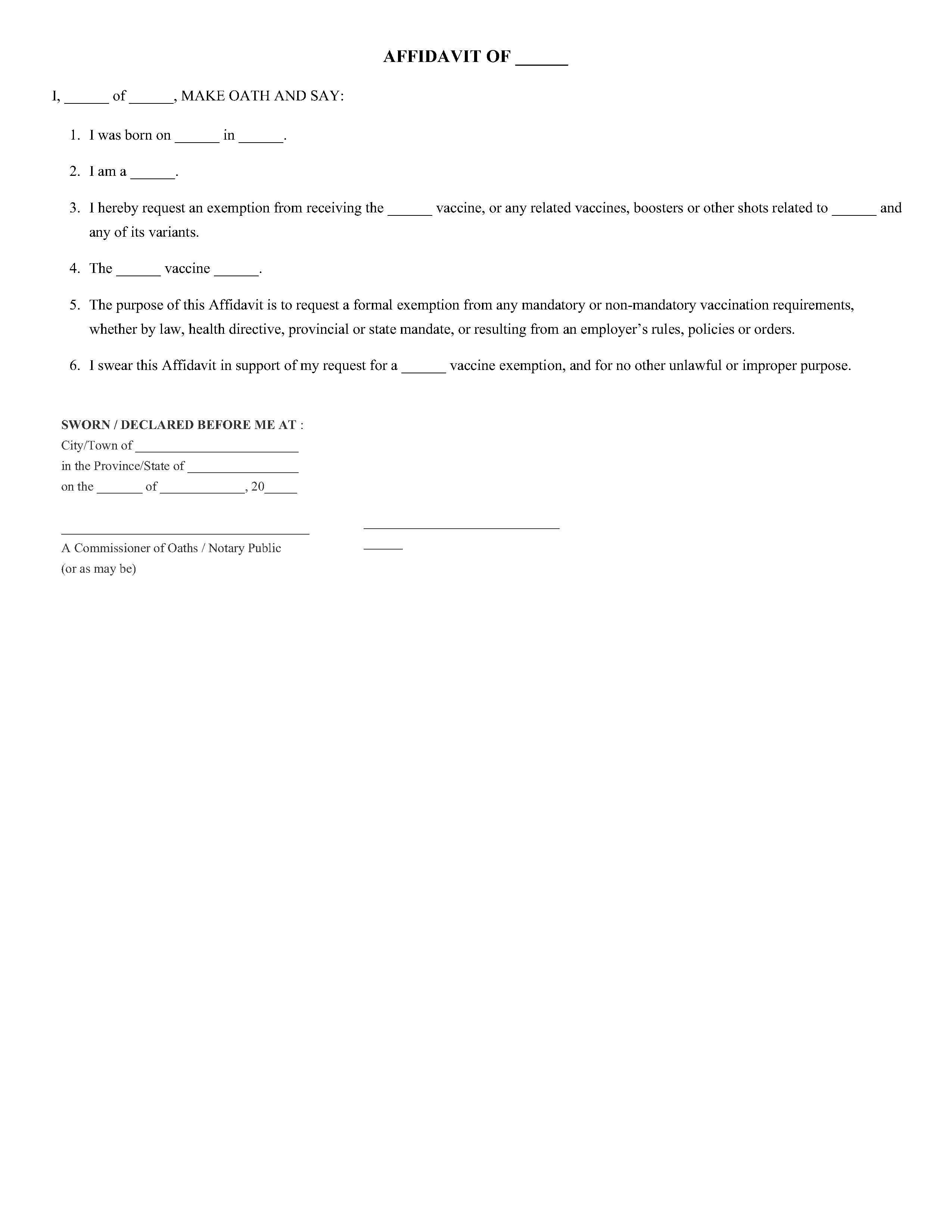 General Vaccine Exemption Affidavit