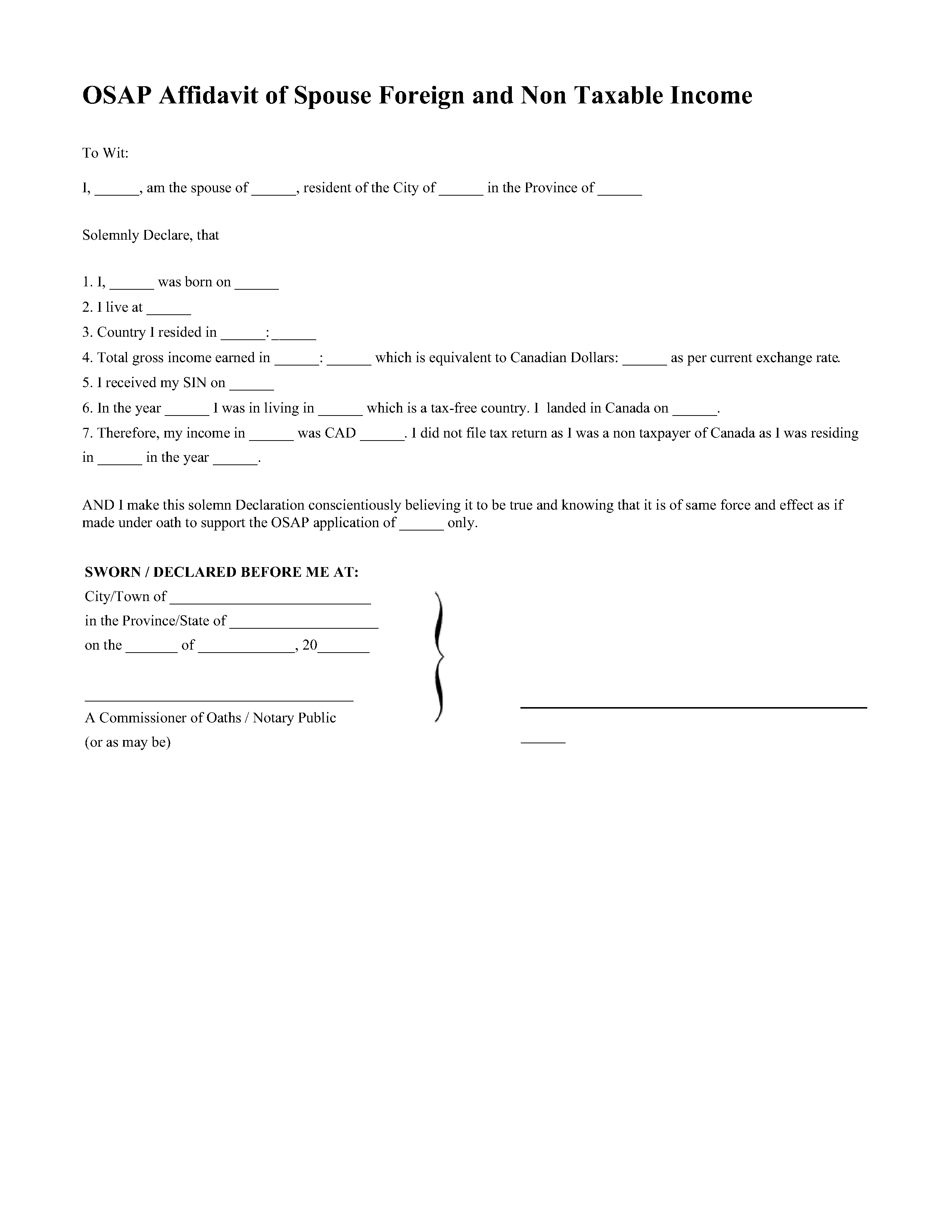 OSAP Affidavit of Foreign and Non-Taxable Spousal Income | Free Template
