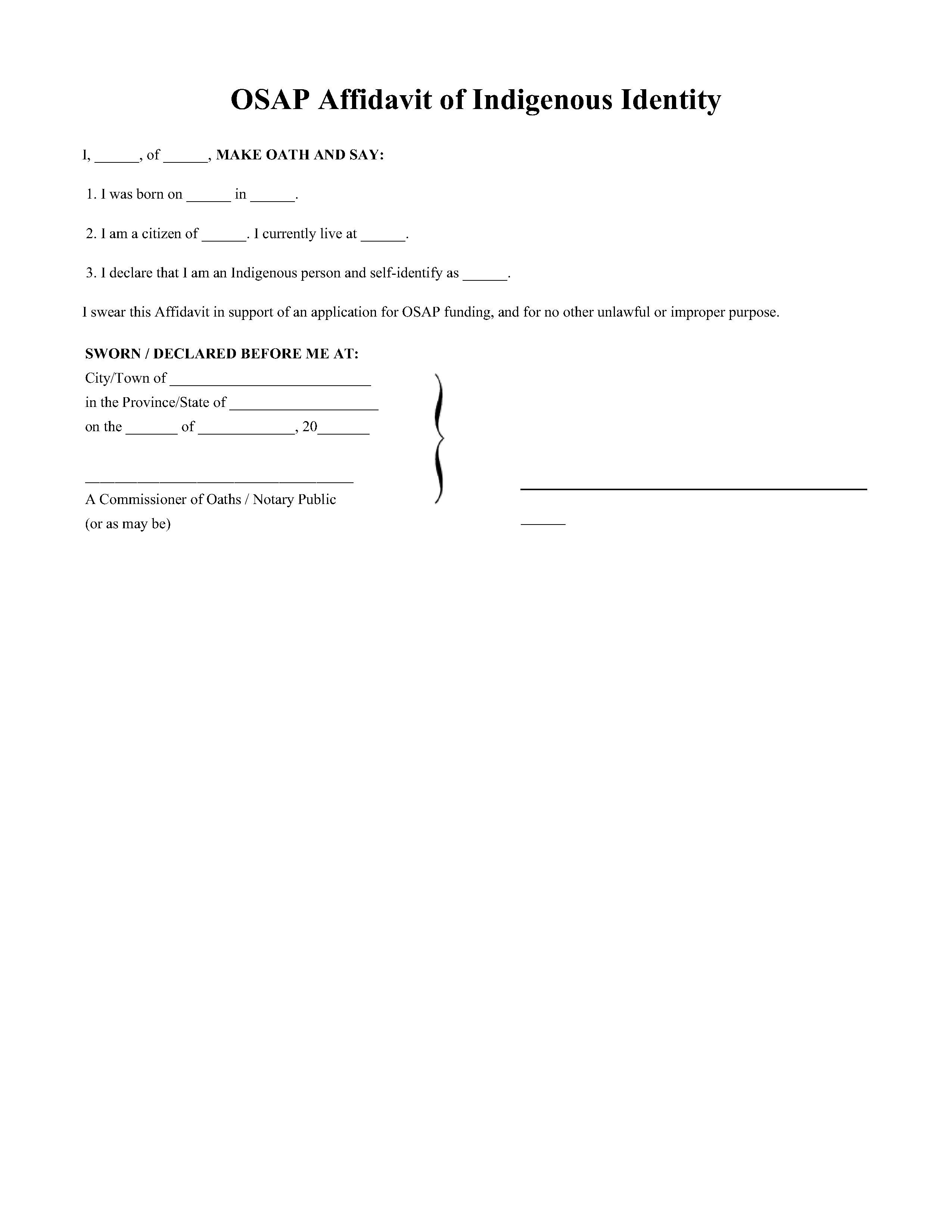 Free OSAP Affidavit of Indigenous Identity Template